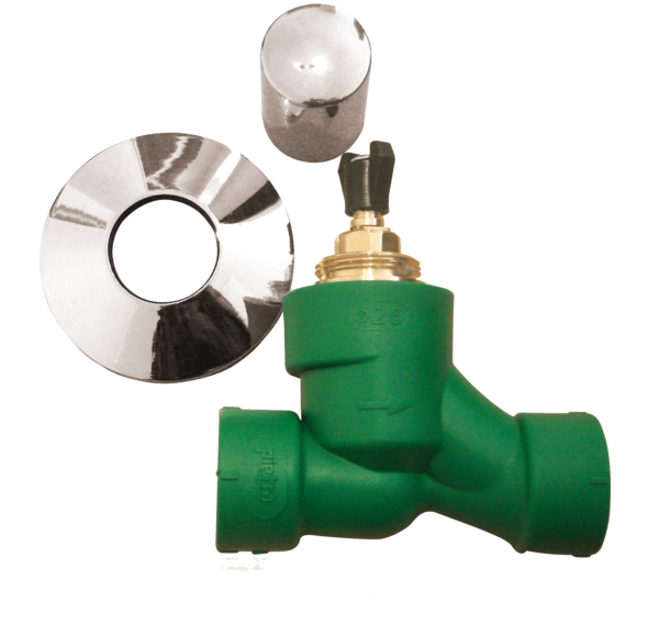 PARA EMBUTIR, DE POLIPROPILENO RANDOM. ESFERA DE BRONCE CROMADO. CABEZAL DE BRONCE Y ASIENTO DFTE.
